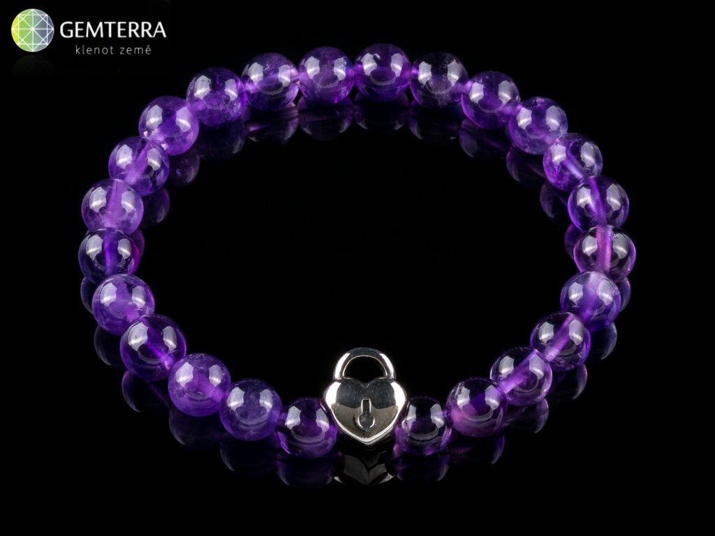 Náramek z korálků ametystu a chirurgické oceli na kvalitním elastickém lanku.