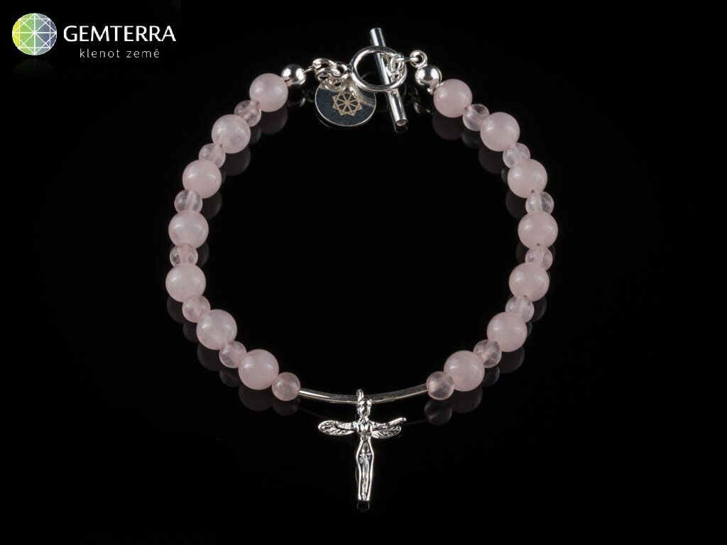 Hladké korálky růženínu v jemně růžových odstínech působí uklidňujícím a harmonickým dojmem. Jejich něžná barva dodává náramku romantický nádech a jemnou eleganci, která se snadno kombinuje s každodenním i slavnostnějším stylem. Menší korálky vytvářejí decentní rytmus a podtrhují lehkost celého designu.