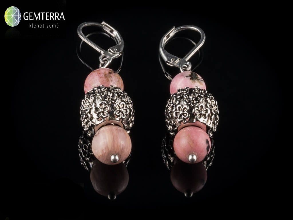 Nádherné náušnice z rodonitu a rozkvetlého korálku z chirurgické oceli Vám budou neustále připomínat vůni léta.